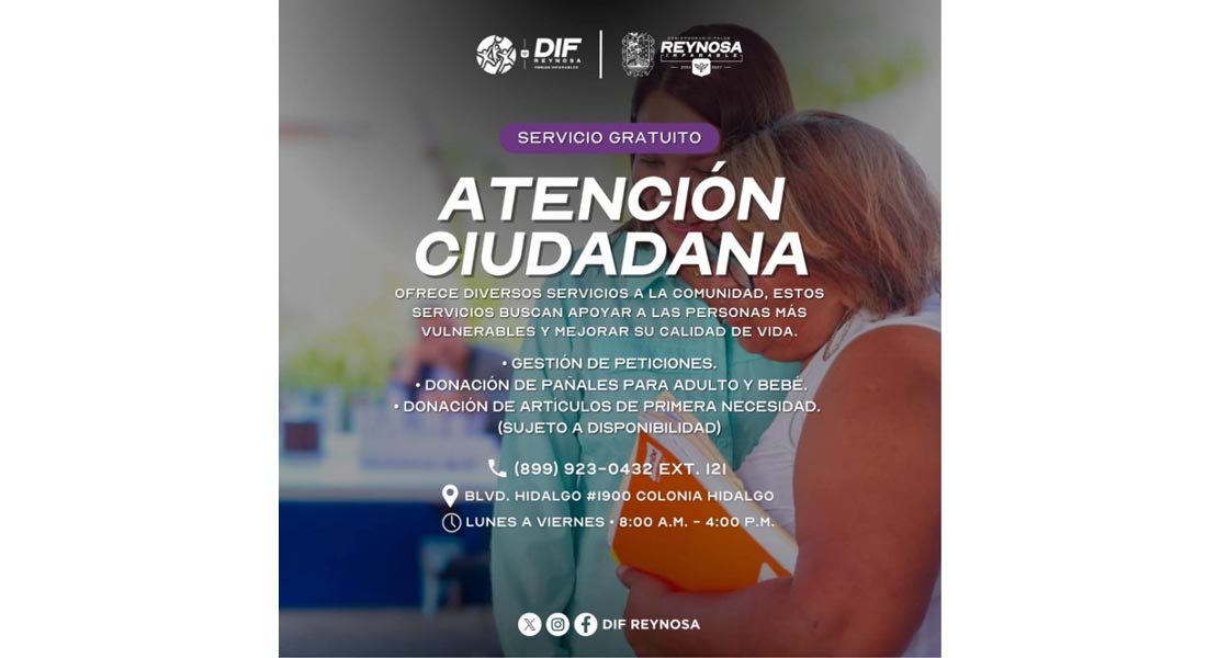 Reynosa, Tam.- El Sistema DIF Reynosa que preside Carlos Luis Peña Garza, brinda diversos apoyos a través del área de Atención Ciudadana, un espacio diseñado para escuchar, apoyar y dar respuesta a las necesidades de las personas más vulnerables.