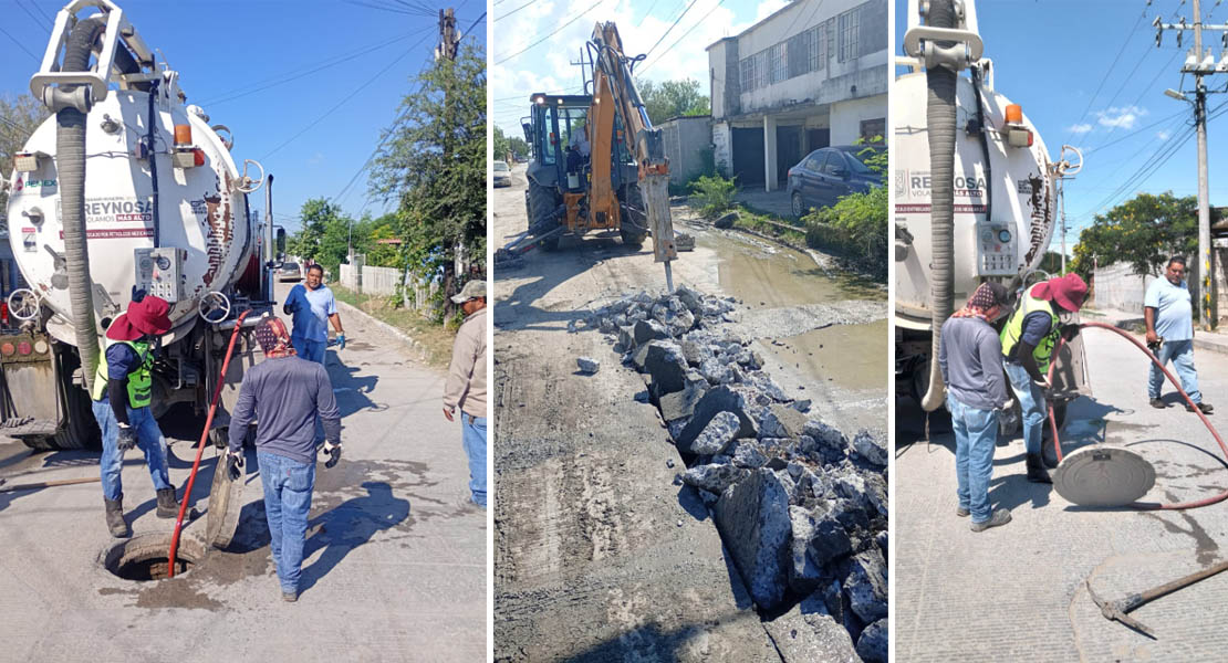 Reynosa, Tam.- Atendiendo las indicaciones del Alcalde, Carlos Peña Ortiz, la Comisión Municipal de Agua Potable y Alcantarillado de Reynosa lleva a cabo acciones de mantenimiento en la colonia Unidad Satélite, con el propósito de mejorar la red sanitaria y garantizar un mejor servicio a las familias del sector.