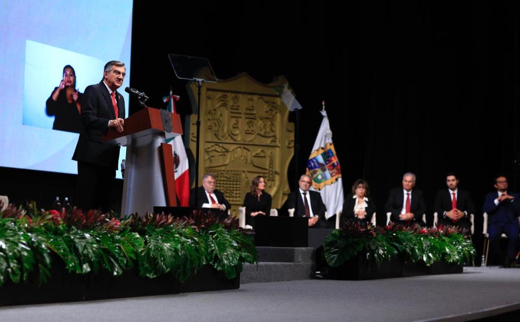 Al hacer un recuento de los compromisos cumplidos, a tres años del inicio de su mandato, acompañado por la presidenta del DIF estatal, doctora María de Villarreal, así como de las y los representantes de todos los sectores productivos del estado, legisladores federales y locales, integrantes del gabinete estatal, mandos de las Fuerzas Armadas, alcaldes y alcaldesas, el mandatario tamaulipeco puntualizó que la participación de nuestro gran estado en el concierto nacional se sustenta en la visión de la nueva ideología política del humanismo mexicano.