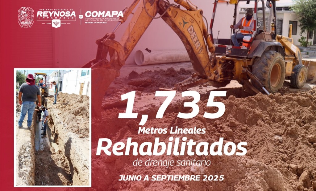 De junio a septiembre del presente año, personal operativo del organismo llevó a cabo la rehabilitación de 1,735 metros lineales de tubería de drenaje sanitario en diversas colonias de la ciudad, beneficiando directamente a cientos de familias. Estos trabajos forman parte del programa permanente de mantenimiento y modernización de la red, con el objetivo de prevenir obstrucciones y brindar un mejor servicio a los hogares de Reynosa.