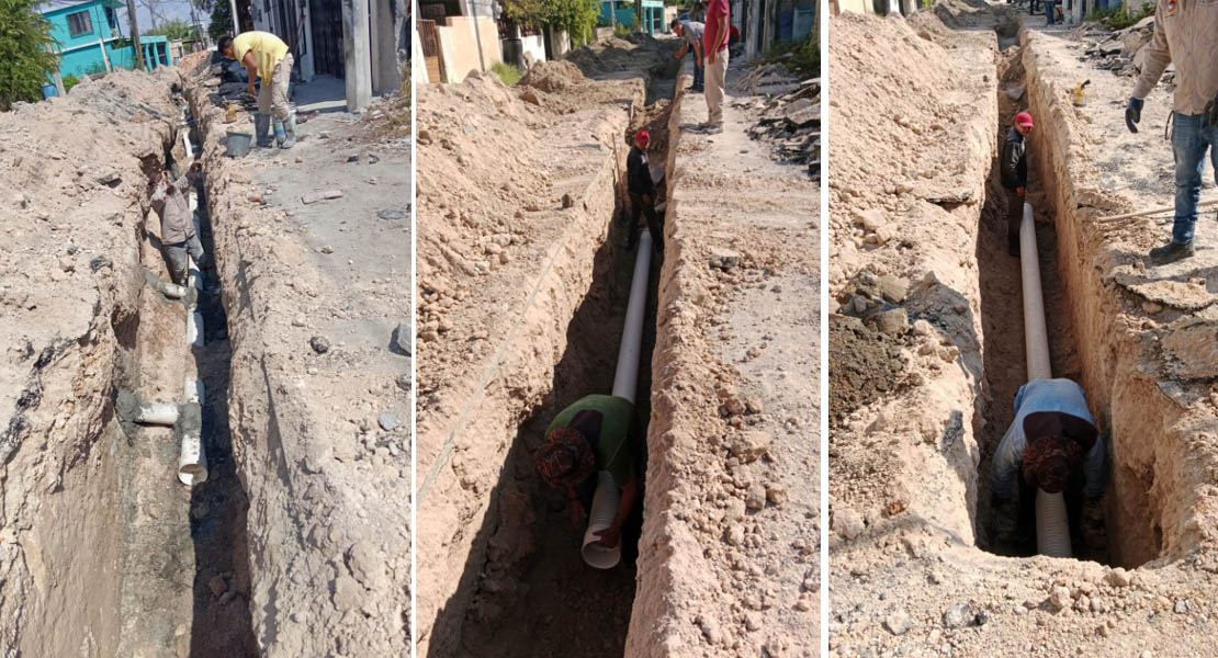 En esta ocasión, el personal del organismo lleva a cabo la rehabilitación de drenaje sanitario sobre calle Veracruz, entre Segunda y calle 3, en la colonia Adolfo López Mateos, donde se efectúa la sustitución de ductos de PVC. Estas acciones buscan optimizar el sistema de drenaje y prevenir futuras obstrucciones en la red sanitaria.