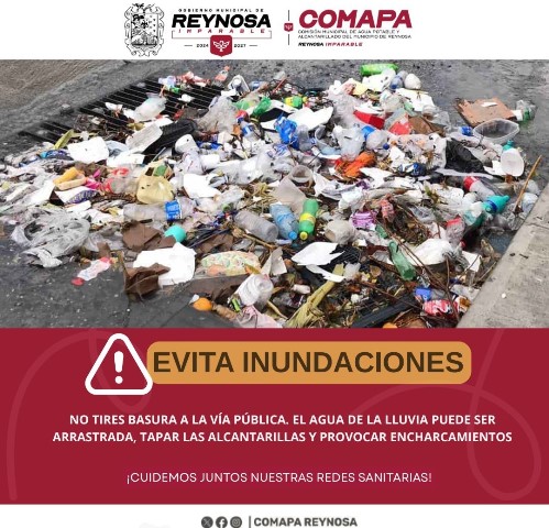 Reynosa, Tam.- La Comisión Municipal de Agua Potable y Alcantarillado de Reynosa reitera el llamado a la ciudadanía a tomar medidas de concientización, evitando arrojar basura y desechos a las vías públicas. Estas acciones contribuyen al buen funcionamiento de los sistemas de drenaje y al cuidado del entorno urbano.
