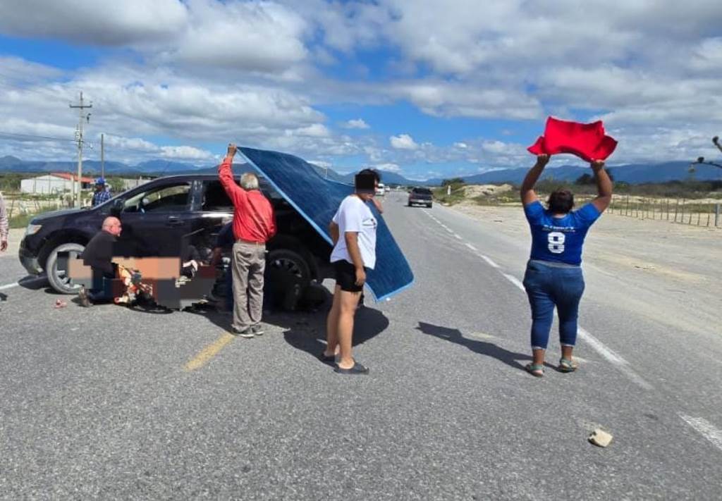 Tula, Tamaulipas.- Derivado de un choque entre una camioneta y una motocicleta, la circulación se encuentra cerrada en un carril de norte a sur de la Carretera Federal 101 Tula-San Luis Potosí.