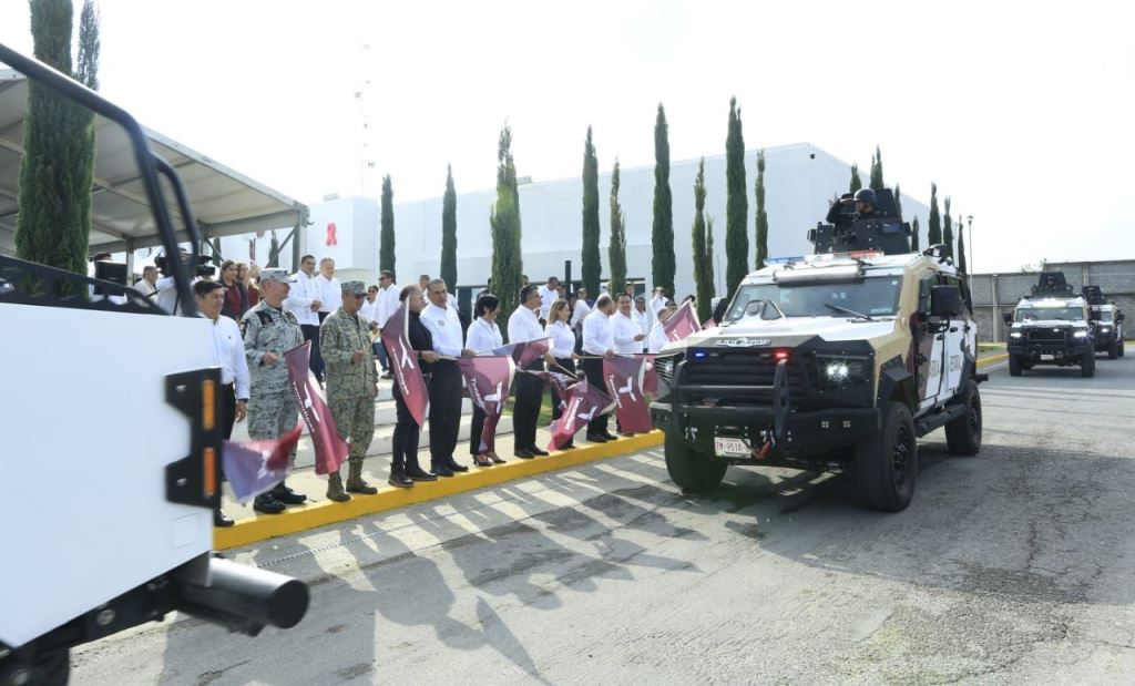 Durante el evento, en el Complejo Estatal de Seguridad Pública, el gobernador dio el banderazo a 14 vehículos blindados tipo Mamba y 15 camionetas pick up Ram 2500, para fortalecer el despliegue operativo de la corporación.