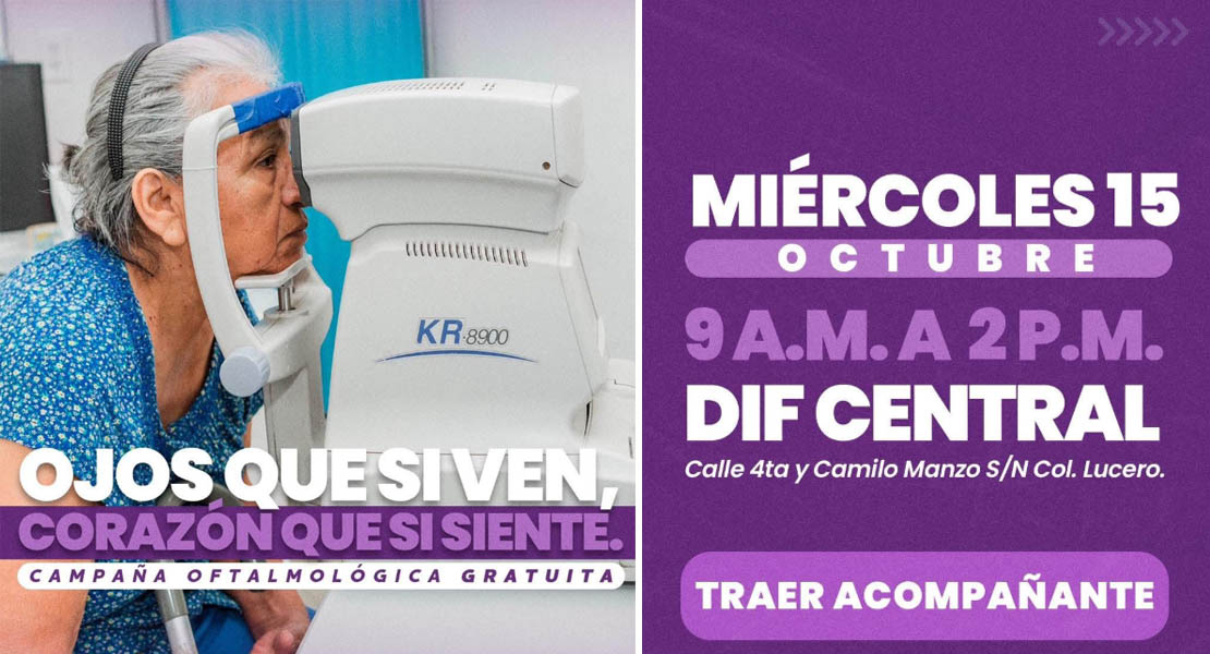 Como parte de esta campaña gratuita, se ofrecerá examen de la vista, consulta oftalmológica, consulta con especialista retinólogo, así como detección de glaucoma, cataratas, pterigión y entrega de vales para lentes.