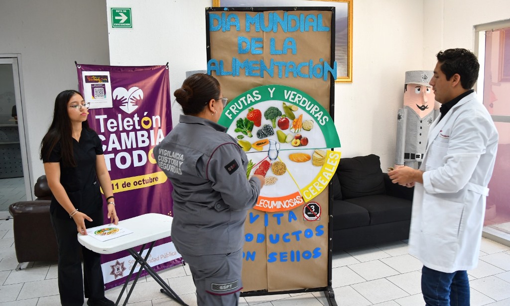 Ciudad Victoria, Tamaulipas.- En el marco del Día Mundial de la Alimentación, la Secretaría de Seguridad Pública de Tamaulipas (SSPT) llevó a cabo una dinámica a través de la cual, personal operativo y administrativo conoció la actualización del plato del bien comer y los diferentes grupos de alimentos.