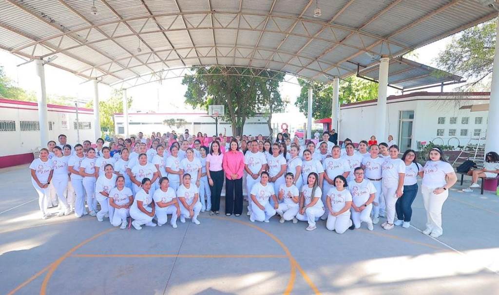 «Lo más importante es que te tienes que tocar, conocerte y si ves algo que no te gusta te puedes acercar a la Coordinación de Salud Integral de la Mujer que tenemos en el DIF para que te hagan tu estudio, hacemos mamografías todo el año», dijo en su mensaje la Directora del DIF Municipal. Asistieron al evento la coordinadora de CEDIF, Cynthia Martínez Hernández y alumnos del taller de enfermería.