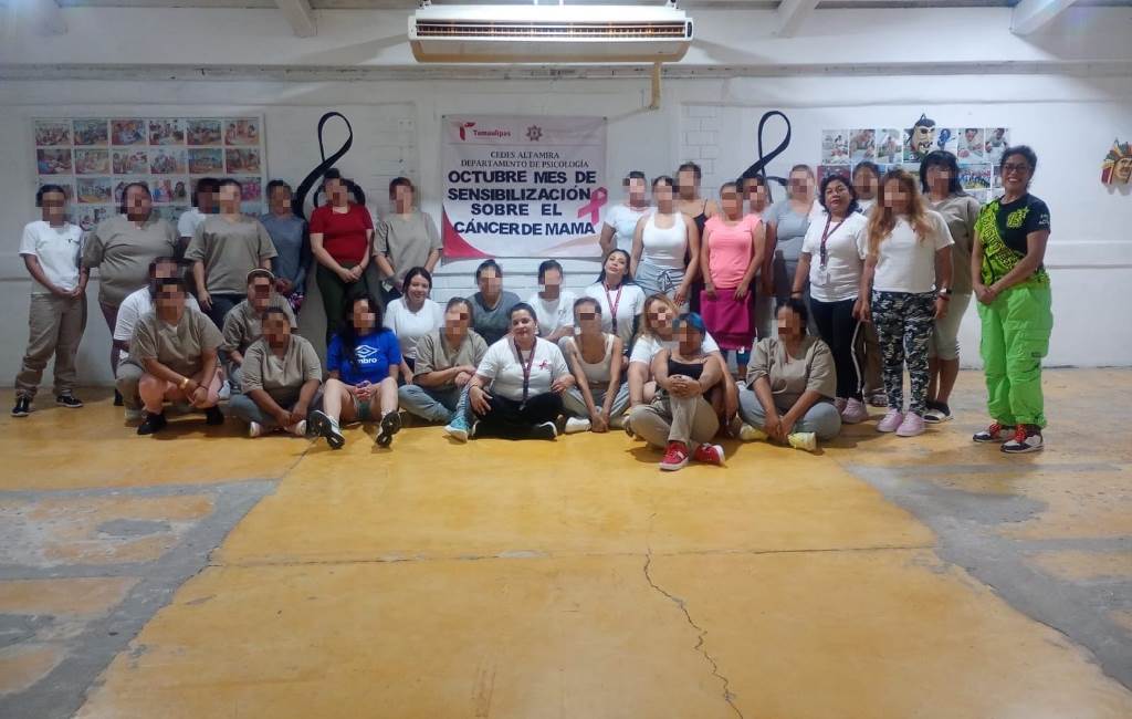 Altamira, Tamaulipas.- Con actividades que promueven el bienestar físico y mental, el Centro de Ejecución de Sanciones (CEDES) del municipio de Altamira se pintó de rosa y conmemoró la lucha contra el cáncer de mama.