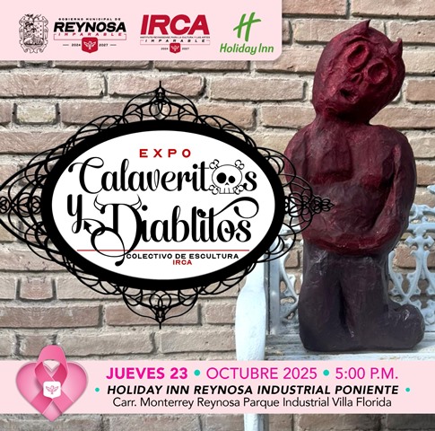 Reynosa, Tam.- El Gobierno de Reynosa, que preside el Alcalde Carlos Peña Ortiz, invita a la ciudadanía a la inauguración de la exposición «Calaveritas y Diablitos», este jueves 23 de octubre a las 5:00 P. M. en el lobby del hotel Holiday Inn Reynosa Industrial Poniente. La entrada es libre.