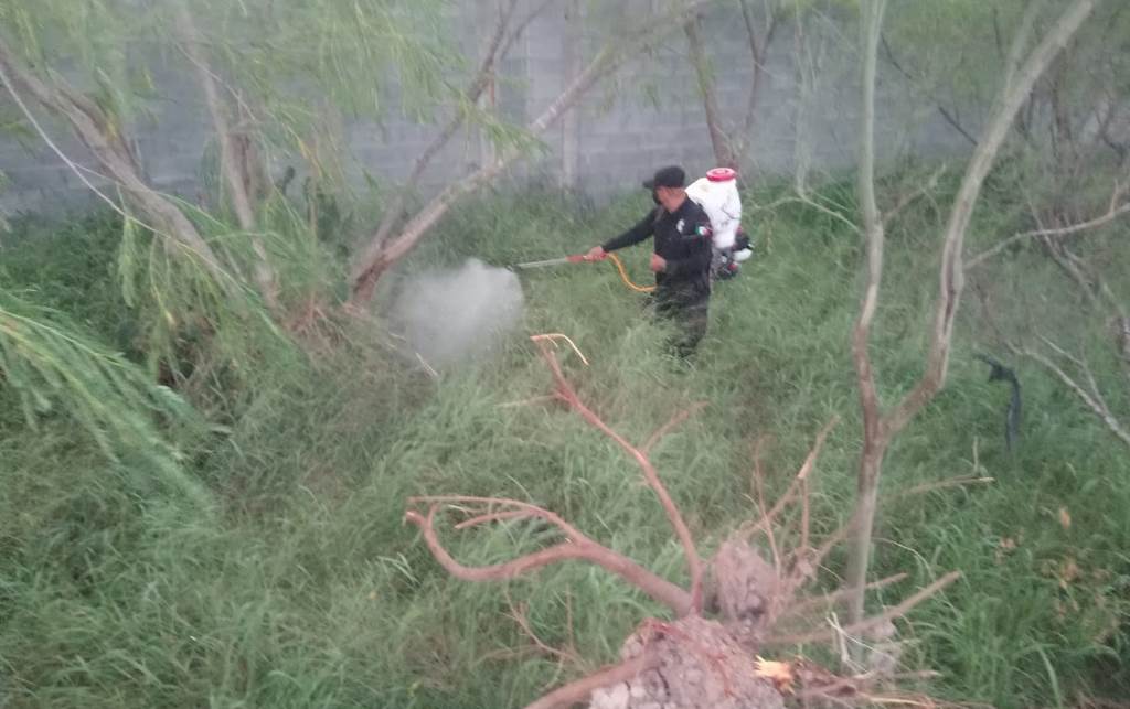 Los oficiales realizaron recorridos aleatorios sobre la orilla del canal del fraccionamiento, con la finalidad de prevenir incidentes y, al mismo tiempo, fumigar y reducir la maleza que puede favorecer la proliferación de fauna nociva y afectar la limpieza del área.