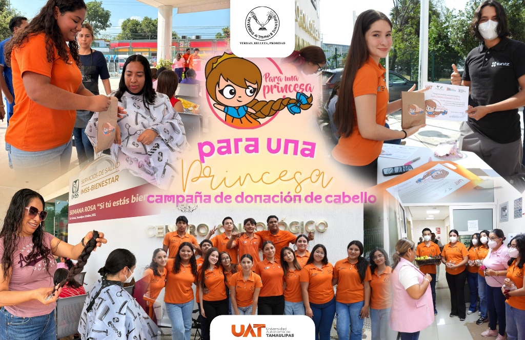 Ciudad Victoria, Tam.– Con el objetivo de brindar apoyo y esperanza a niñas que enfrentan tratamientos oncológicos, la Universidad Autónoma de Tamaulipas (UAT), a través de su Preparatoria No. 3 de Ciudad Victoria, llevó a cabo una jornada de donación de trenzas de cabello como parte de la campaña permanente “Para una Princesa”.