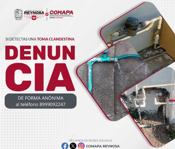 Reynosa, Tam.- La Comisión Municipal de Agua Potable y Alcantarillado de Reynosa exhorta a la ciudadanía a denunciar cualquier toma clandestina que detecten en sus sectores, ya que este tipo de conexiones irregulares afectan directamente la presión y el suministro del vital líquido, provocando un servicio deficiente en distintas colonias.