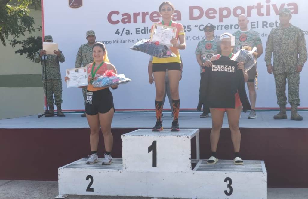 Ciudad Victoria, Tamaulipas.- La integrante de Fuerza Especial de la Guardia Estatal (FEGE), obtuvo el tercer lugar en la carrera deportiva “Guerreros, el Reto” en la categoría femenil, organizada por el 77/o Batallón de Infantería en Ciudad Victoria.