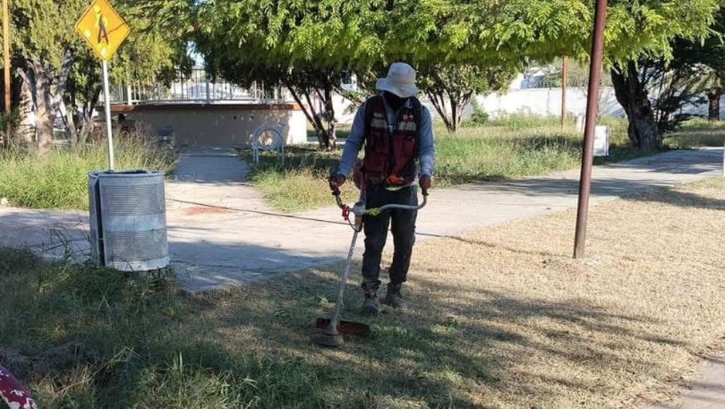 – Plaza pública en la colonia Integración Familia, donde se realiza corte de maleza, limpieza general y poda de árboles.