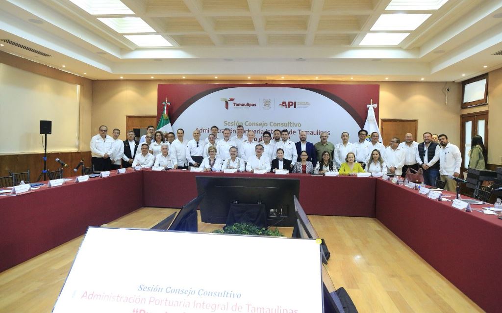 Ciudad Victoria, Tamaulipas.- Al presidir la sesión del Consejo Consultivo de la Administración Portuaria Integral de Tamaulipas, Puerto del Norte, el gobernador Américo Villarreal Anaya reiteró su compromiso para apoyar las gestiones y las autorizaciones necesarias a fin de seguir impulsando este gran proyecto, que tiene una alta rentabilidad para el desarrollo nacional y que permitirá convertir a Tamaulipas en la principal frontera marítima del país.