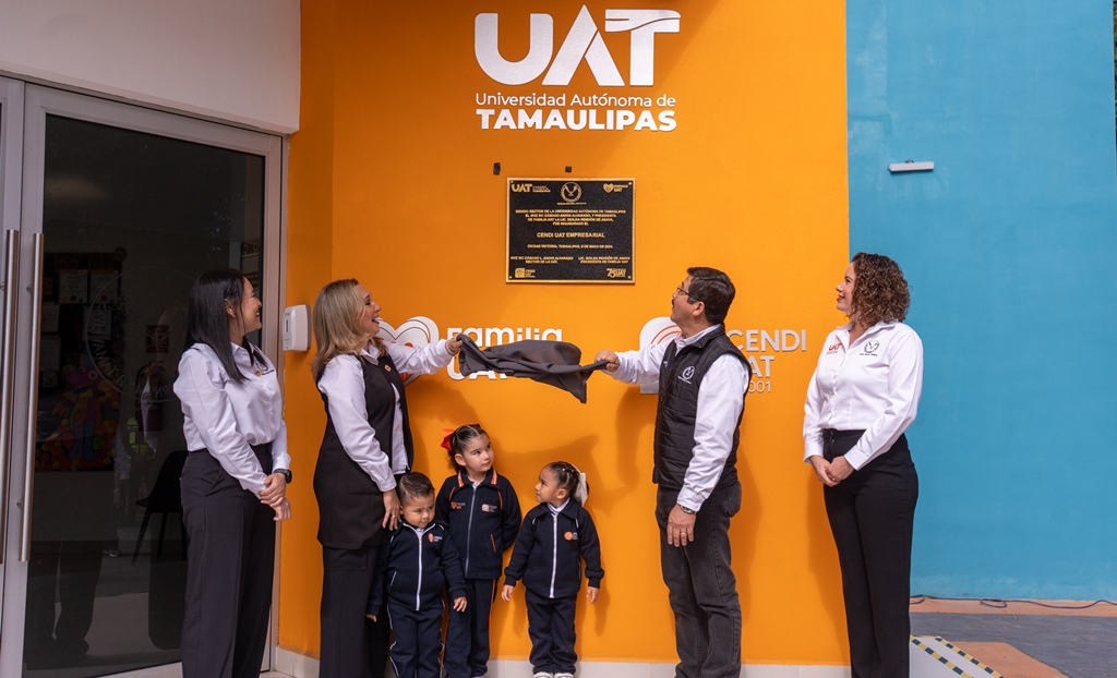 Acto seguido, el rector y su esposa, Isolda Rendón, develaron una placa conmemorativa de la creación de este centro, que ha sido catalogado como CENDI UAT Empresarial A0001, atendiendo a menores en las áreas de lactantes y maternal, mediante un modelo de atención integral que promueve el desarrollo físico, emocional y cognitivo en un ambiente de seguridad y afecto.