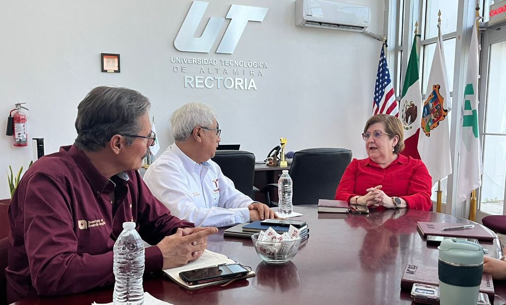 El subsecretario ha visitado el Instituto Tecnológico de Ciudad Victoria y la Universidad Tecnológica de Altamira, para empezar el proceso donde las y los estudiantes con carreras relacionadas a energías renovables participen en el Programa “Electrificación al 100%”, en su fase de instalación, coordinación y mantenimiento.