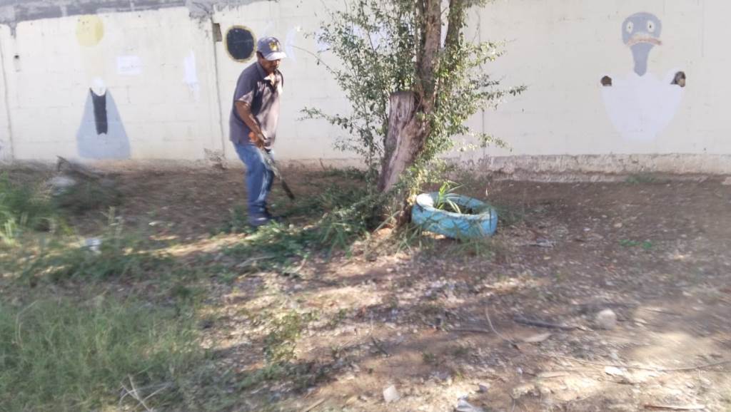 Con anterioridad la escuela ubicada en la calle Campeche fue objeto de limpieza general para evitar la reproducción de fauna nociva y sea un espacio seguro para los estudiantes, así como mejorar su aspecto, para hoy, realizar la poda de cada uno de los árboles de la institución educativa.