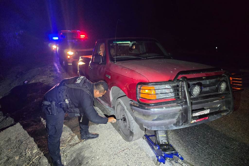 Jiménez, Tamaulipas.- Personal de la Guardia Estatal de Apoyo Carretero atendió a un automovilista que quedó varado en la Carretera Federal 101, a la altura del kilómetro 73, luego de que su vehículo sufriera la ponchadura de un neumático.