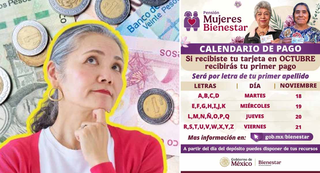 “Las mujeres que se registraron durante el mes de agosto y recibieron su tarjeta en octubre, ya van a recibir a partir de mañana su depósito. Se hizo un calendario por letra también; es su primer pago”. Así mismo dio a conocer el calendario de pagos para nuevas beneficiarias de 60 a 64 años de la Pensión Mujeres Bienestar: