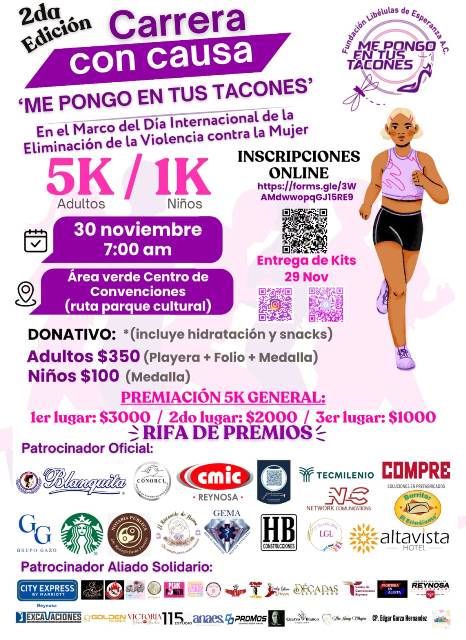 Reynosa, Tam.- El Gobierno del Alcalde Carlos Peña Ortiz brinda su total respaldo para la realización de la Carrera 5K “Me Pongo En Tus Tacones”, que se llevará a cabo en el Parque Cultural Reynosa como parte de las actividades conmemorativas del Día Internacional de la Eliminación de la Violencia Contra la Mujer.
