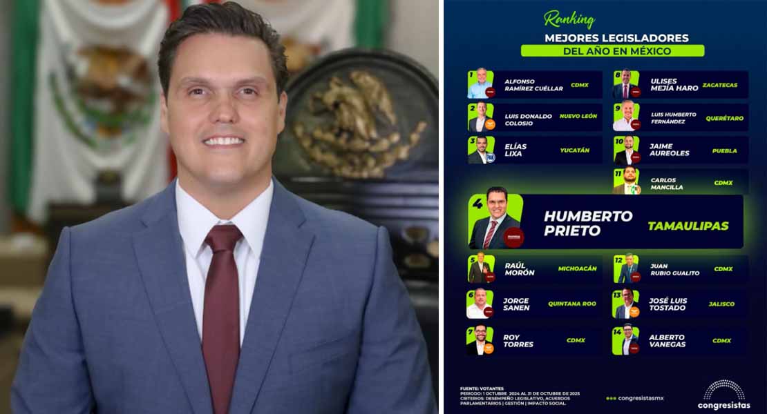 Compitiendo dentro de las primeras 5 posiciones, con senadores y diputados federales, Prieto Herrera es el único diputado local dentro de los mejores calificados por el ranking 2025.