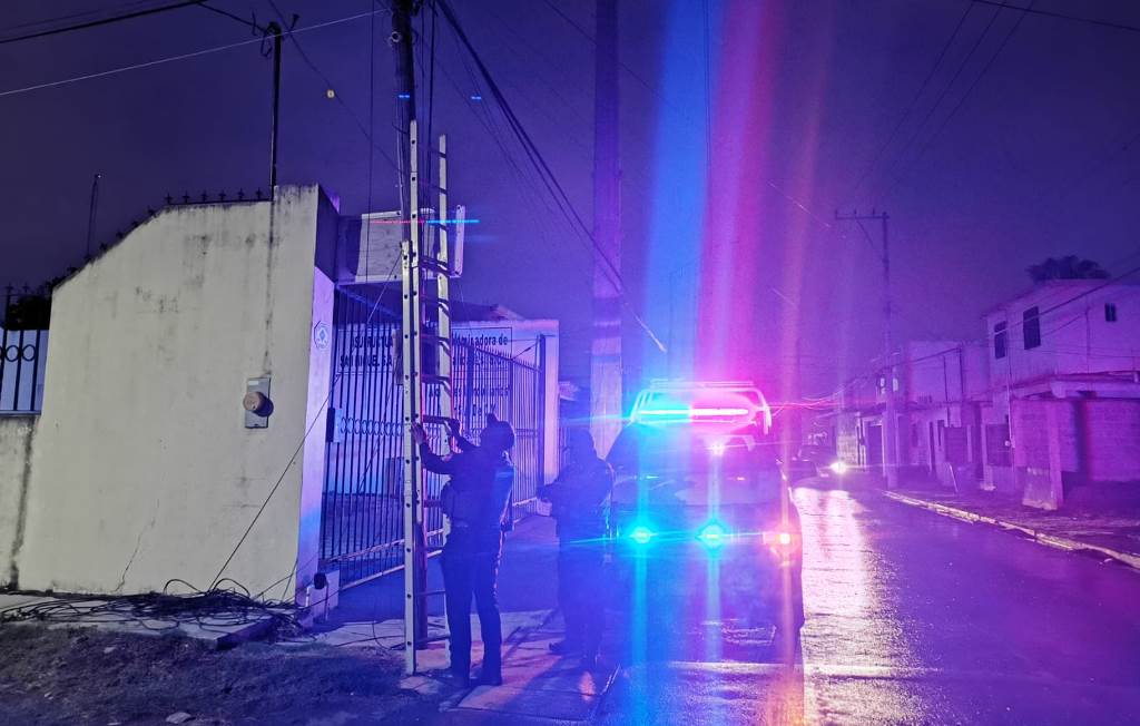 Durante un recorrido de seguridad y vigilancia sobre la calle Galeana, en la esquina con calle Doce, los agentes observaron los dispositivos colocados en la parte alta de la estructura.