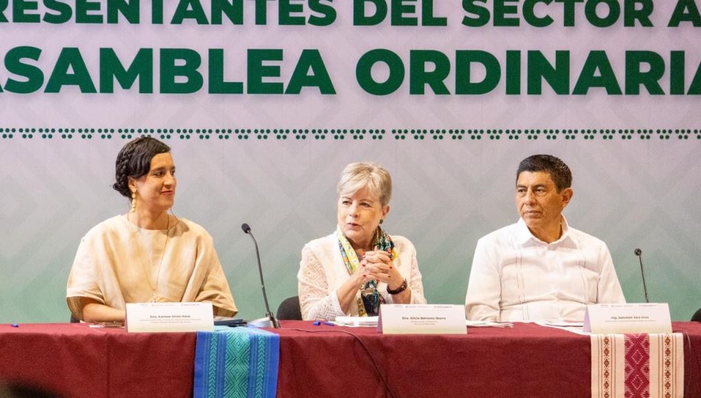 La reunión fue encabezada por la titular de la SEMARNAT, Alicia Bárcena Ibarra; el gobernador de Oaxaca, Salomón Jara Cruz; y el presidente de la Mesa Directiva de la ANAAE, Óscar Alberto Rébora Aguilera.