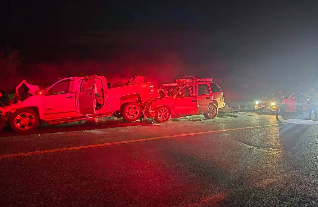 Palmillas, Tamaulipas.- Un choque por alcance entre dos camionetas afectó la circulación en el carril de norte a sur en el kilómetro 72 de la Carretera Federal 101.