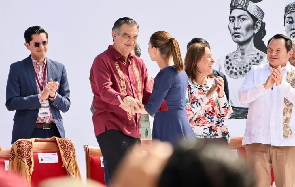 En un amplio recuento de logros y resultados de la Cuarta Transformación, Claudia Sheinbaum se refirió a acciones y programas, entre ellos algunos proyectos que están en marcha y contribuyen al desarrollo y bienestar de las y los tamaulipecos, como la construcción de Viviendas para el Bienestar; los proyectos estratégicos de agua, que incluyen la segunda línea del acueducto en Ciudad Victoria; el tren de pasajeros de Nuevo Laredo a Saltillo; y la tecnificación de 18 distritos de riego en el país, entre ellos el 025 y 026 en Tamaulipas.