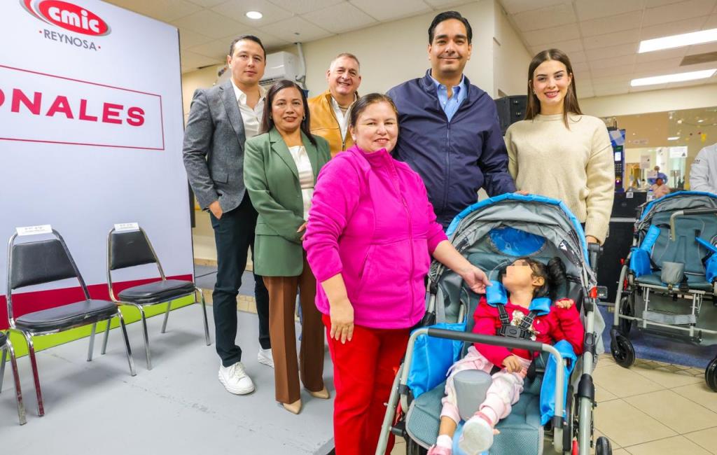 Reynosa, Tam.- «Sabemos que estas sillas no solo facilitan la movilidad, sino que transforman el día a día de quienes las utilizan, permitiendo su participación en actividades escolares, terapéuticas, familiares y sociales», expresó la Presidenta del Voluntariado DIF-Reynosa, Alejandra Yelitza Garza, durante la segunda entrega de aparatos funcionales y sillas PCI de 2025 que encabezó el Alcalde, Carlos Peña Ortiz.