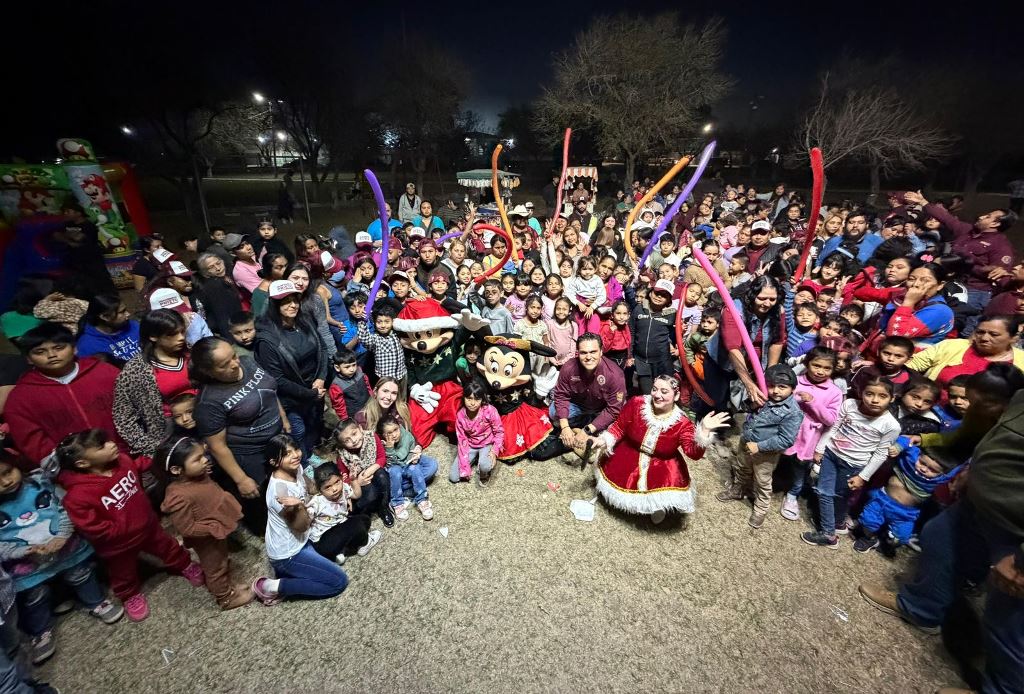 Con una afluencia de más de 300 niñas y niños, acompañados de sus papás y abuelitos, se celebró la fiesta navideña en la plaza de la colonia Almaguer, lugar donde las familias recibieron con alegría al anfitrión de la posada.