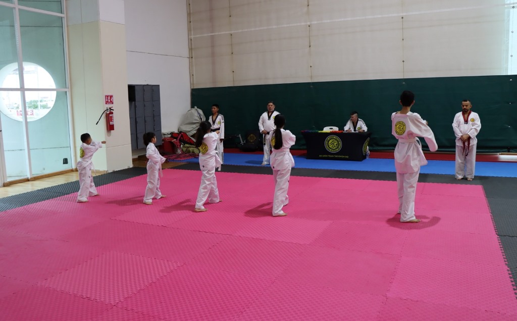 Reynosa, Tam.- Con el firme compromiso de impulsar el deporte y la formación integral de la niñez y juventud reynosense, el Alcalde Carlos Peña Ortiz brindó su respaldo para la realización de los exámenes de promoción de grados de Taekwondo de los alumnos del IMD.