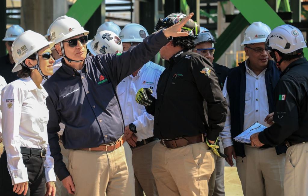 Autoridades del sector energético del Gobierno de México encabezados por la titular de la Secretaría de Energía (SENER), Luz Elena González Escobar, la directora general de la Comisión Federal de Electricidad (CFE), Emilia Calleja Alor y el director general de Petróleos Mexicanos (Pemex), Víctor Rodríguez Padilla, supervisaron la maniobra de montaje del reactor de hidrotratamiento del proyecto de Aprovechamientos de Residuales en la Refinería de Salina Cruz, Oaxaca.