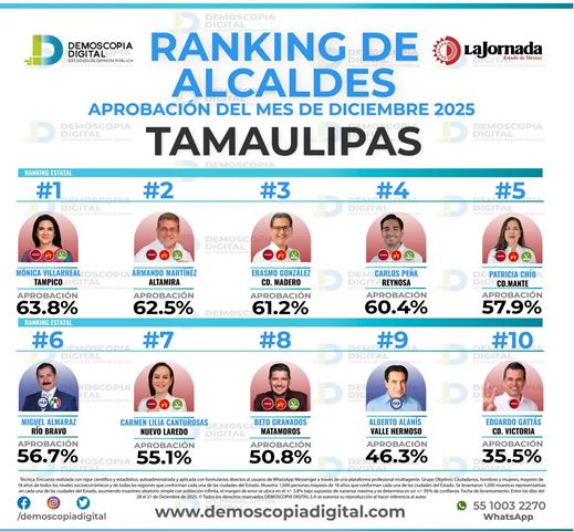 - Ubicado Como El Sexto Alcalde Mejor Posicionado En Tamaulipas.*