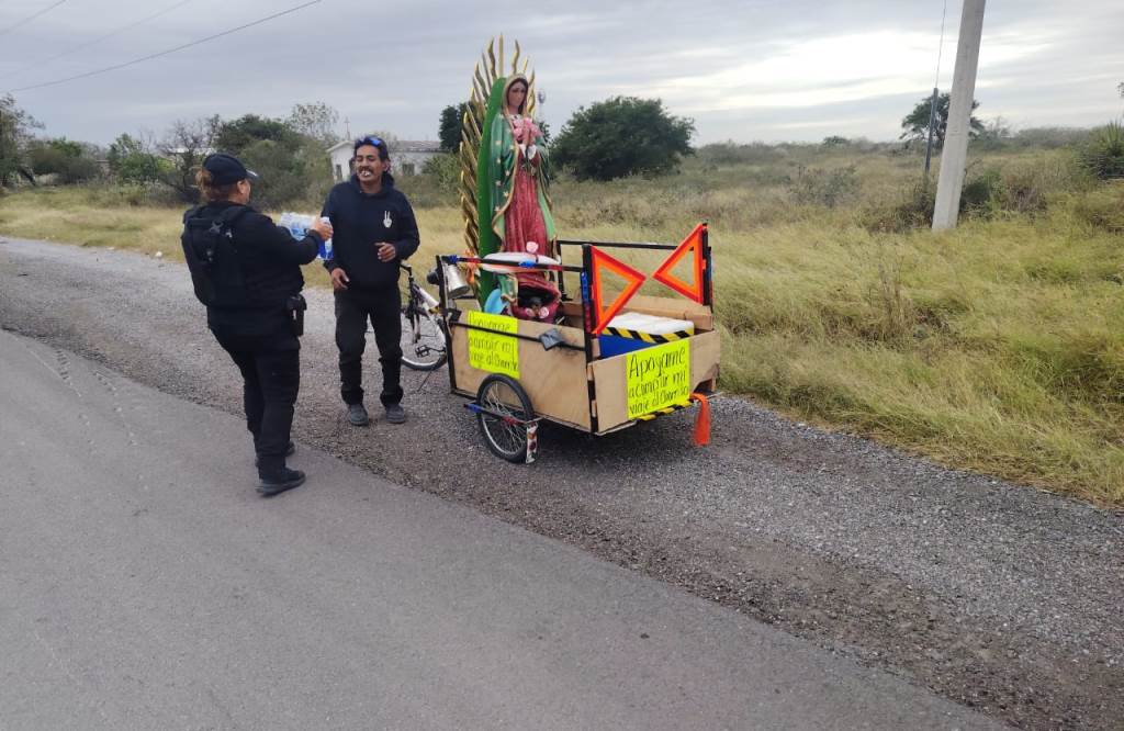 San Fernando, Tamaulipas.- Cumpliendo una manda religiosa, un ciclista residente del municipio de Reynosa partió con rumbo a El Chorrito a bordo de una bicicleta tricarga trasladando una figura de la Virgen de Guadalupe.
