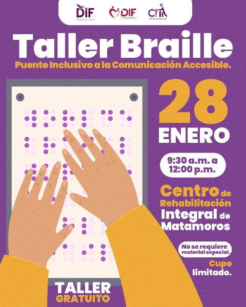Matamoros, Tam.- El Sistema DIF Matamoros, a través del programa Camino de Luz, invita a la comunidad a formar parte del Taller Inclusivo de la Comunicación Braille, cuyo objetivo es adentrar a las personas con discapacidad visual en el conocimiento y uso de este sistema.