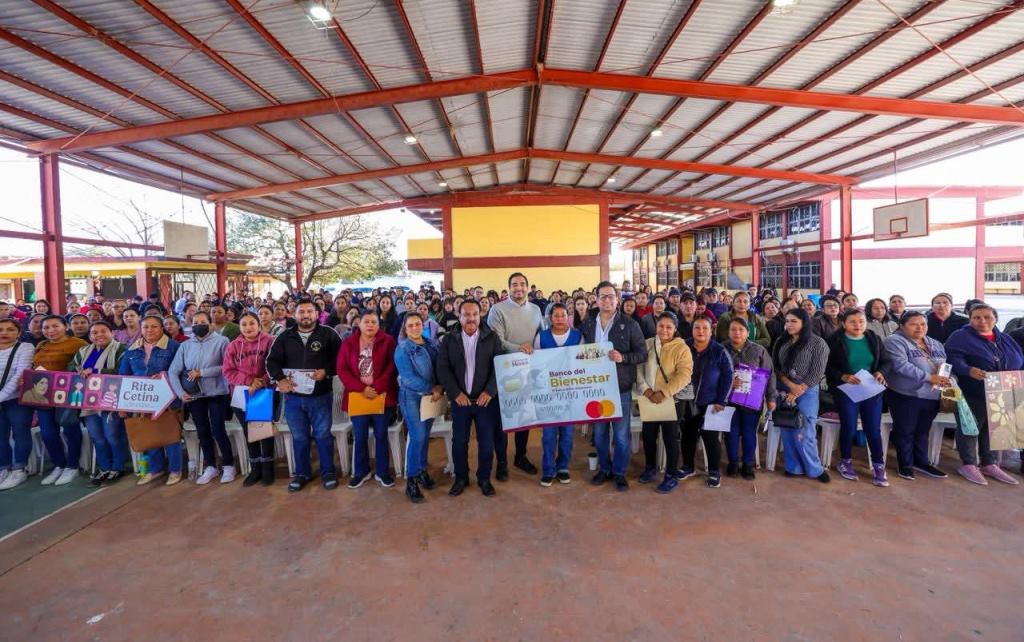 Reynosa, Tam.- La secundaria Joaquín Contreras Cantú, fue centro de reunión de padres de familia con el Presidente Municipal Carlos Peña Ortiz y el Coordinador de Becas para el Bienestar, Alexander Alan Bolaños Tinoco, quienes en acto protocolario hicieron entrega de las tarjetas de apoyo a la educación básica, Rita Cetina.