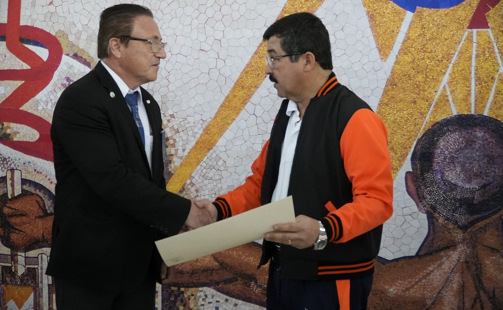 La entrega de esta distinción estuvo a cargo del Shihan Juan Gerardo Guerrero Ortiz, director de Grados y de Kata de la Federación Mexicana de Judo, en el marco de la eliminatoria de judo en su etapa “Estatal CONADE 2026” desarrollada en el Gimnasio Universitario del Campus Victoria, con la presencia de la secretaria de Bienestar Social de Tamaulipas, Silvia Casas González.