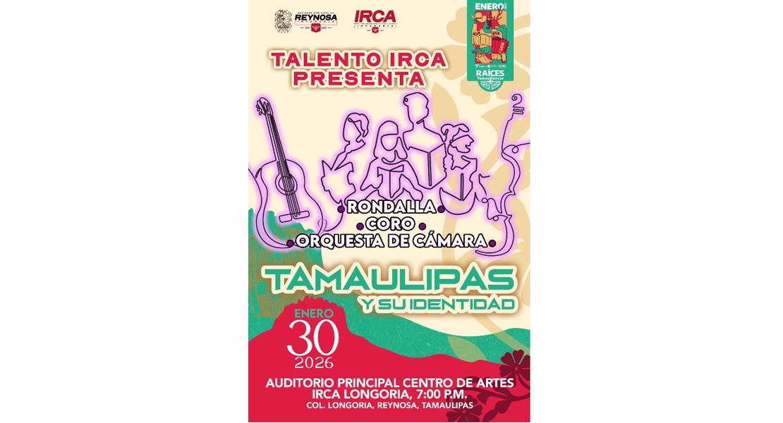 En el marco del Mes de las Raíces Tamaulipas, el evento destacará el talento local con la participación de la Rondalla Infantil del IRCA, que interpretará la emblemática pieza «El cuerudo tamaulipeco», para después sumarse a la Rondalla Juvenil y entonar el tema «El mil amores».