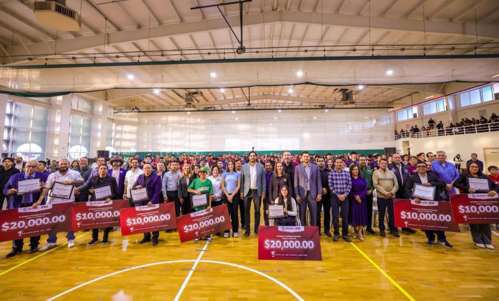 Reynosa, Tam.- El Alcalde Carlos Peña Ortiz entregó esta tarde el Premio Municipal del Deporte y Premio al Periodismo Deportivo 2025, un galardón que reconoce el esfuerzo, la dedicación, disciplina y honor de los atletas reynosenses y de los periodistas de la ciudad, evento que presidió acompañado por su esposa Alejandra Yelitza Garza, por la Diputada Federal Claudia Alejandra Hernández Sáenz y por el Director del Instituto Municipal del Deporte, Saúl Soto Castro.
