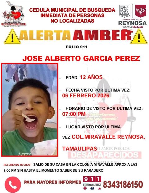 Si cuenta con informaci贸n que pueda ayudar a localizarlo, favor de comunicarse de inmediato al 911 o al 834 318 6150.
