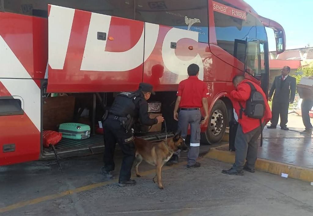 Como parte de la inspección, se revisaron 30 maletas y dos autobuses de transporte foráneo.