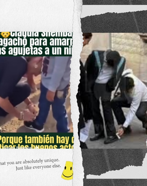 Claudia Sheinbaum, Presidenta De La República. Se Inclina Para Abrochar Los Zapatos A Un Niño