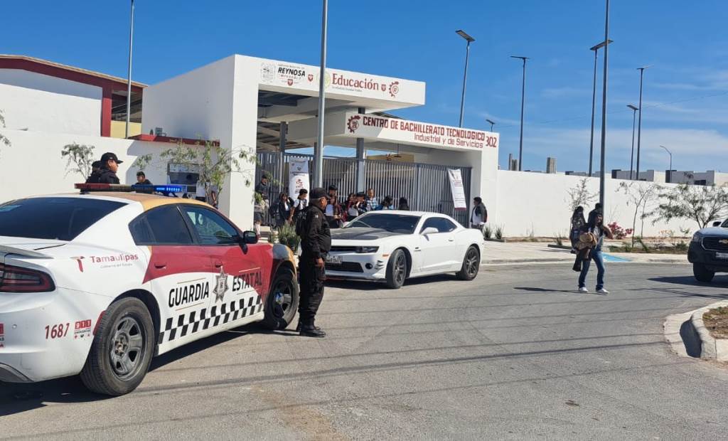 Reynosa, Tamaulipas.- A través del operativo ‘’Escuela Segura’’, personal de la Guardia Estatal de Apoyo Carretero comisionado a la Estación Reynosa Poniente salvaguardó la integridad de estudiantes del Centro de Bachillerato Tecnológico, Industrial y de Servicios (CBTIS) plantel 302 durante su retorno a clases tras concluir el ú