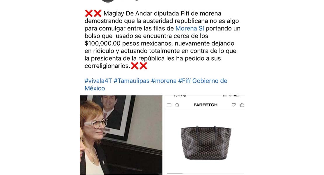 Luego de que en redes sociales circulara una publicación en la que se cuestiona el uso de una bolsa de mano y su presunto costo, Maglay Deandar diputada local respondió a los señalamientos asegurando que su patrimonio es previo a su incursión en la vida pública.