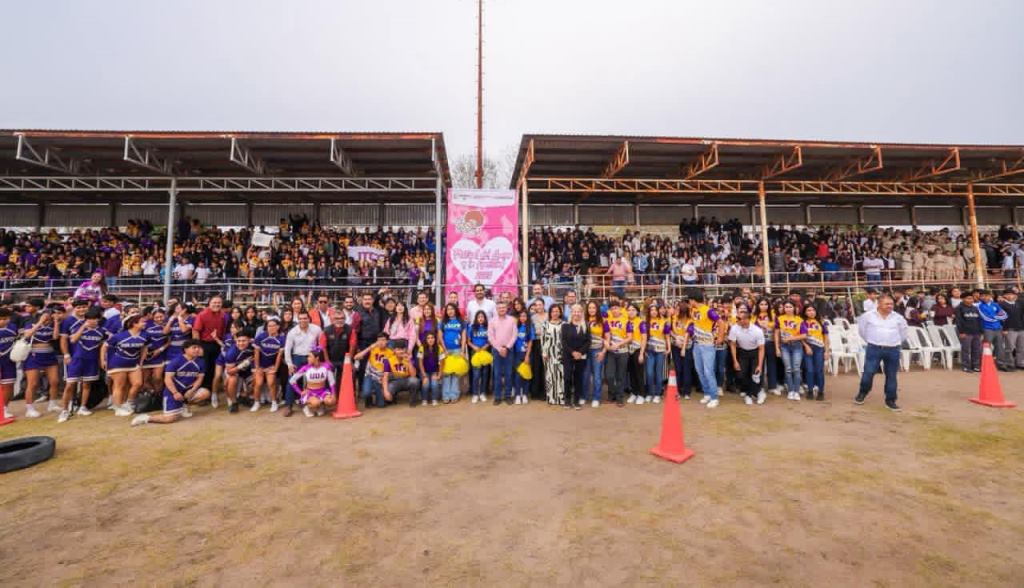 Reynosa, Tam.- El Alcalde Carlos Peña Ortiz y su esposa la Presidenta del Voluntariado DIF-Reynosa, Alejandra Yelitza Garza, inauguraron el Festival del Amor y la Amistad 2026 com mas de 2 Mil estudiantes de Preparatoria y Universidad, en el campo de fútbol del Gimnasio de la UAT, donde destacaron la importancia de impulsar la sana convivencia y los valores entre los jóvenes.