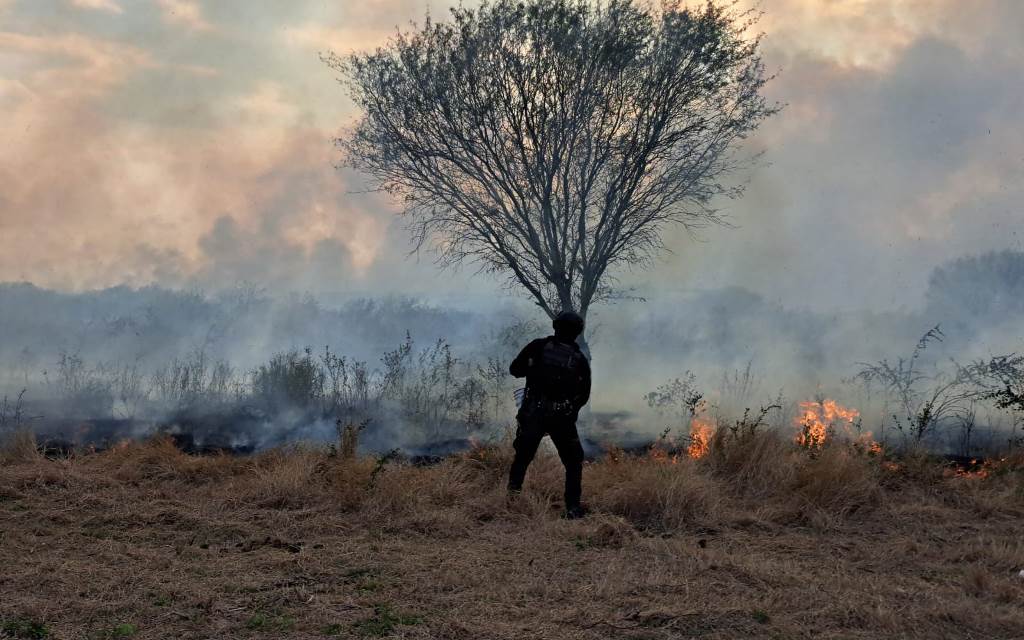 Debido a que el incendio afectó también al interior de un rancho, el personal de la Guardia Estatal apoyó con maniobras para sofocar el fuego.