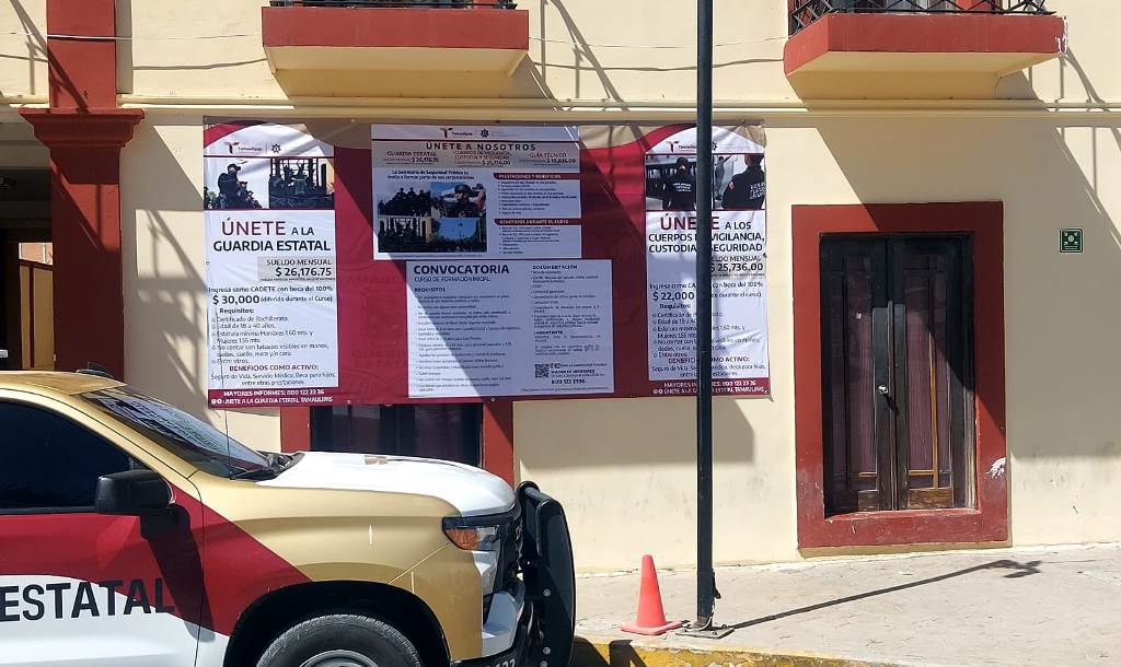 La colocación del material forma parte de las estrategias de difusión que buscan ampliar el alcance de la convocatoria y acercar oportunidades laborales dentro de la corporación policial a habitantes del Altiplano tamaulipeco.