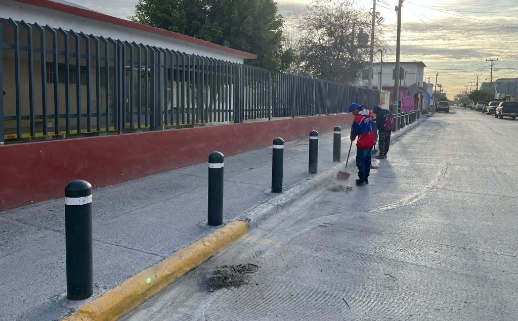 – Limpieza en la escuela primaria Escudo Nacional, ubicada en la colonia La Joya.